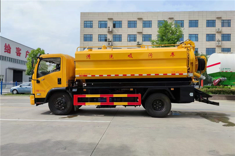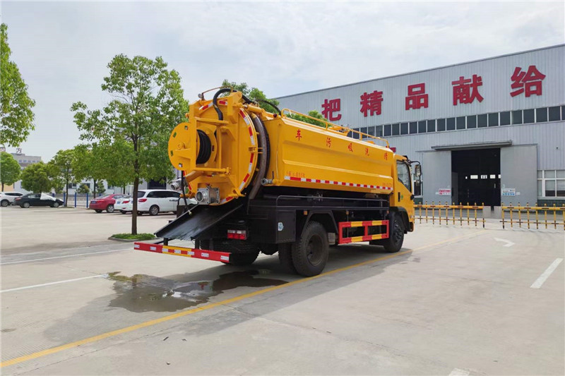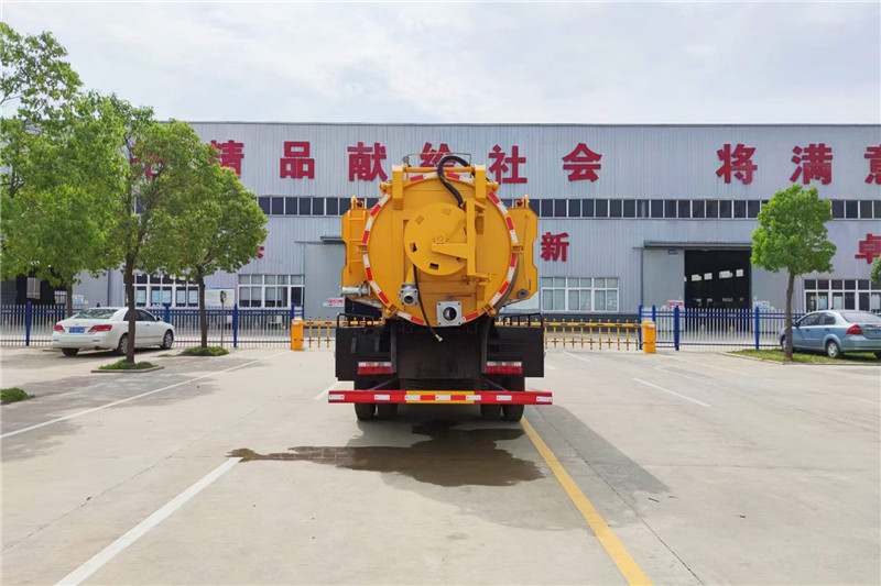 2、清洗吸污車上裝配置:罐體容積3方水罐+9方污水罐,共12方總容積,罐體采用6mm優質碳鋼板,采用德國品浮215/min22MPa高壓泵,吸污部分采用SK-12水循環泵,氣推水,10個組合噴頭,直徑19高壓管60米,吸污罐帶舉起升,后蓋液壓開啟,罐體后尾部一個100進污口球閥和一個150排污口球閥,8米吸污管一根,一套陰陽端,壓力表,視糞管,防溢閥,其他標配。