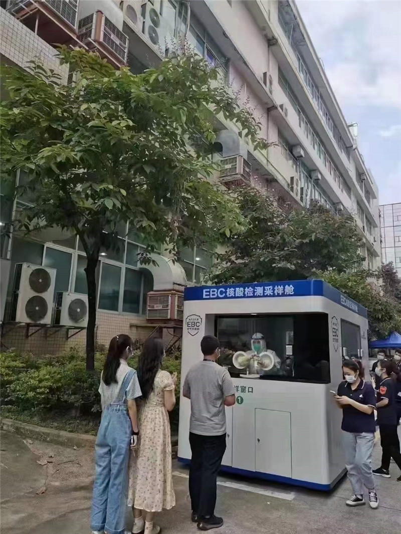 核酸檢測亭基本配置:正壓防護,H14過濾系統,高清語音對話系統,試管儲物柜,艙外垃圾箱,艙內擱物臺,單窗口(或雙窗口)檢測臺,采樣分體式橡膠手套,冷暖空調,紫外線消毒燈,LED節能照明燈,采樣人員凳子,福馬輪,觀察窗,核酸試劑傳遞裝置,試劑冷藏室,遮陽卷棚,可變模塊,叫號預約系統。