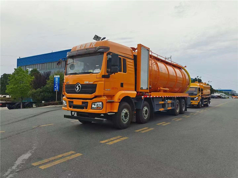 程力在吸污車的基礎上研發出清洗吸污車清洗吸污車是在吸污車和高壓清洗車的基礎上加裝吸污泵、吸污罐、吸污管道等設施的集清洗和吸污兩種功能于一身的特種車輛,由兩個罐體、兩個泵(高壓清洗泵、真空吸污泵)、兩套管路系統等組成。
