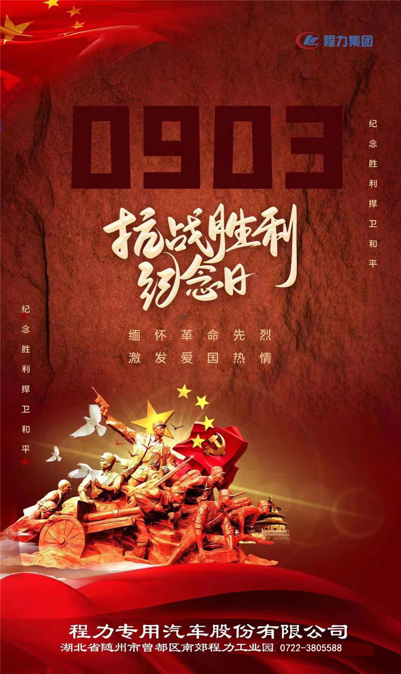 9月3日是中國人民抗日戰爭勝利77周年紀念日,和平生活來之不易,革命先輩的犧牲永不敢忘,愿以我輩之芳華,捍衛盛世之中華!程力集團代表所有員工緬懷革命先烈,激發愛國熱情。紀念勝利捍衛和平。