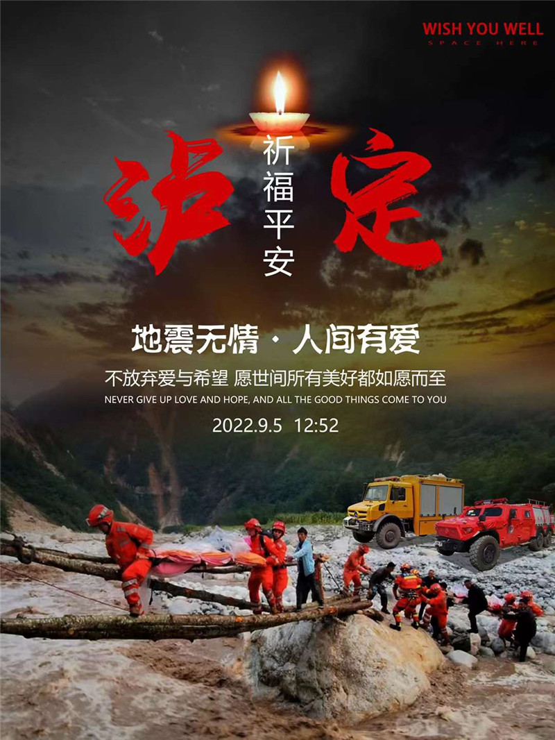 2022年9月5日四川瀘定發(fā)生地震,程力汽車集團(tuán)深切哀悼地震遇難同胞,為逝者默哀,為生者祈福。逝者安息,吾輩自強(qiáng)!天災(zāi)無(wú)情,人有情,給受災(zāi)的同胞們祈禱平安,瀘定加油!中國(guó)加油!