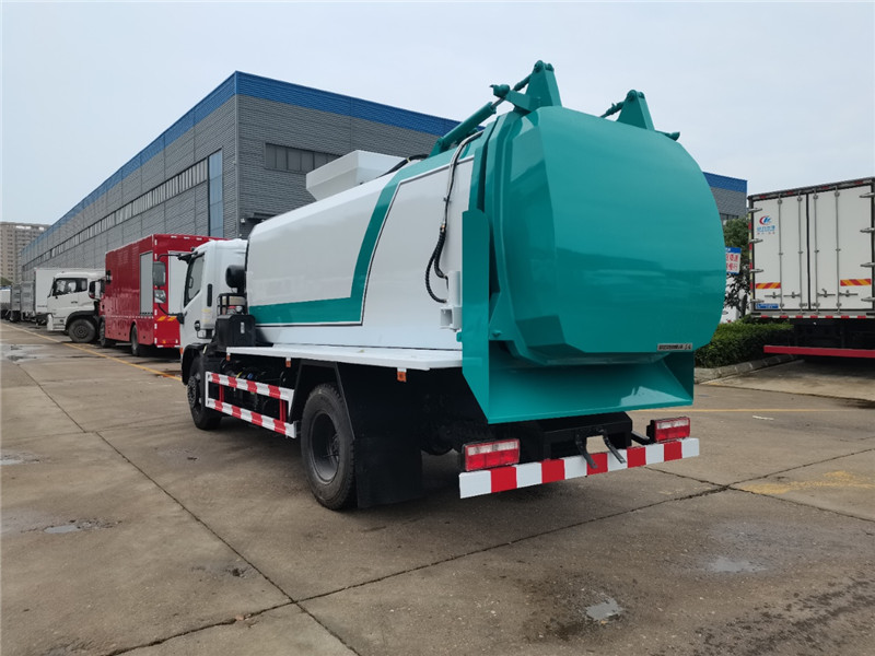 4、這是一款更可靠的新能源環衛車輛,上裝部分與底盤是機械式取力,故混動車型黃綠牌的首選隨意進城,不受黃藍限制障率更低。車輛上裝簡介:常規標配:罐體采用優質碳鋼制作,方形罐體,室外手動操作,配備固液分離裝置:帶有全推推鏟將固體垃圾從罐體前部推壓到罐體尾部進行卸料,罐體底部配有過濾網對罐內垃圾進行初步的固體垃圾與液體垃圾分離;罐體右側裝有掛桶提升機構裝卸桶裝垃圾,可掛120L或240L標準塑料方形垃圾桶;后蓋采用液壓開啟、關閉。后蓋帶有密封橡膠墊防止車輛在行駛過程中出現泄漏。后蓋鎖緊裝置為液壓鎖緊。