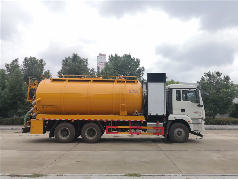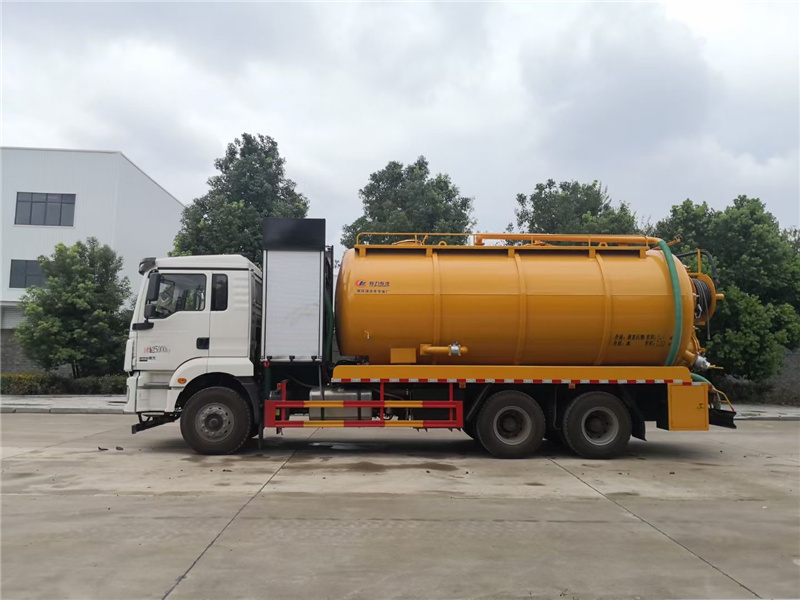 大型的清洗吸污車主要應用在污水處理廠,在車輛外觀顏色上,多以黃色和紅色為主,汽德龍新M300前四后八國六清洗吸污車罐體內部做有防腐處理及防浪隔板,罐體材質為5mm厚優質碳鋼,也可選裝6mm厚優質碳鋼。