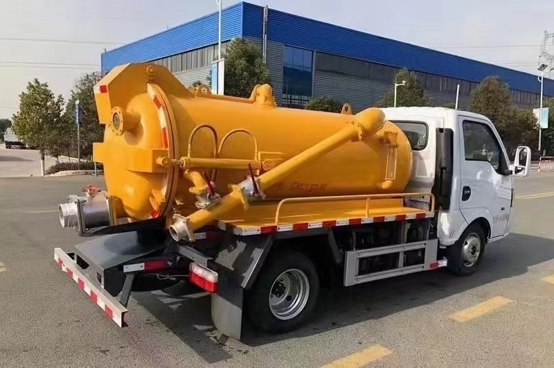藍牌吸污車專用功能為自吸自排,罐體為全密封壓力罐,吸力大,可吸下水道污泥等含雜質較多的污物,罐體可舉伸液壓打開后蓋自卸,帶后自流口,帶視糞窗,帶壓力表,帶洗手裝置。
