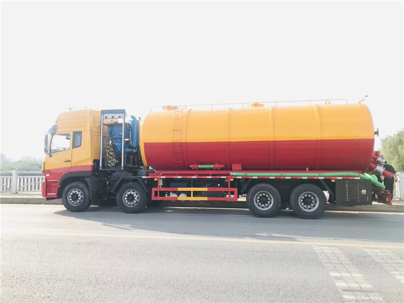 東風(fēng)22噸高壓市政排水搶修吸污車是在高壓清洗車的基礎(chǔ)上加裝吸污泵、吸污罐、吸污管道等設(shè)施的集清洗和吸污兩種功能于一身的特種車輛,由兩個(gè)罐體、兩個(gè)泵(高壓清洗泵、真空吸污泵)、兩套管路系統(tǒng)等組成。