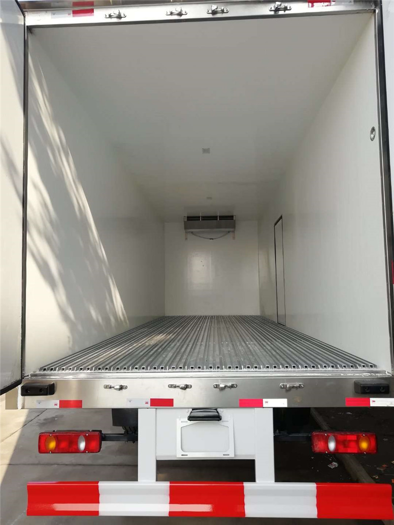 這款東風途逸冷藏車一般用冷藏車運輸的貨物都是不能長時間保存的物品,雖然有制冷設備,仍需較快送達目的地。冷藏車的貨柜類似集裝箱,但由隔熱效果較好的材料制成,減少了熱量交換。