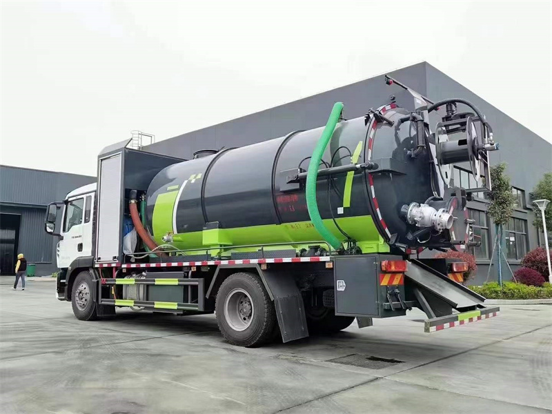 重汽TX系列清洗吸污車(chē)罐體容積約15方,8m碳鋼板材,清水約6方,清水箱兩側(cè)一邊一個(gè)消防栓進(jìn)水口,其余為吸污,罐頂兩個(gè)散水罐口(帶爬梯),兩倉(cāng)球閥互通,罐頂一個(gè)互通。兩倉(cāng)中間用封頭8mm,高壓泵接氣吹,通潔250流量高壓清洗泵,100米25高壓管,高壓泵進(jìn)水管加粗,卷盤(pán)裝后封頭180度旋轉(zhuǎn),卷盤(pán)帶液壓旋轉(zhuǎn),兩套偉業(yè)油泵。安裝30水環(huán)泵帶375馬力副發(fā),吸污管道帶排氣閥。后封頭液壓打開(kāi),里面用方鋼十字加固。后封頭上安裝一個(gè)600水泥蓋放污可液壓開(kāi)啟,一個(gè)150不銹鋼球閥圓,一個(gè)100不銹鋼球閥圓,側(cè)面副駕尾部一個(gè)150寸不銹鋼偷排閥,后封頭一個(gè),罐內(nèi)鋪不銹鋼板,罐體尾部箭頭燈,帶一個(gè)視污窗口,后封頭一個(gè)視糞管,一個(gè)工具箱兩層。帶8米吸污管。其余廠內(nèi)標(biāo)配。