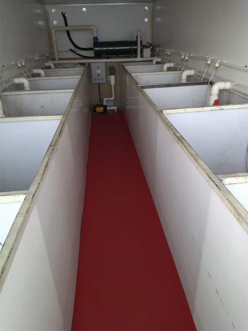 配備:發(fā)電機,增氧機,制冷機,漩渦風機,海水專用泵,兩側共12個水箱……