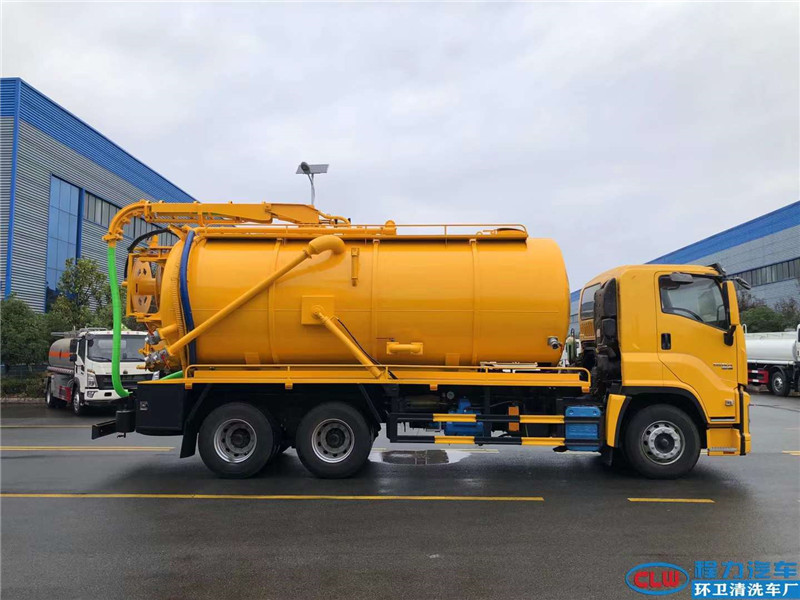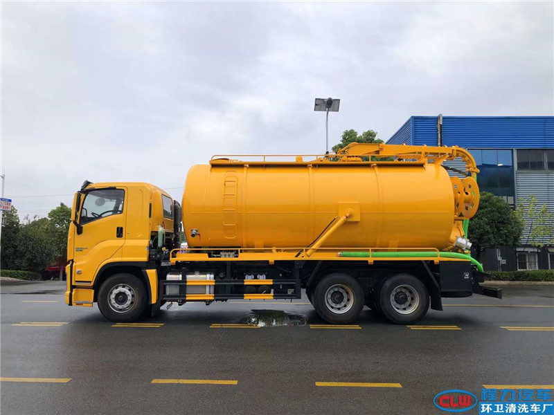 程力高端清洗吸污車新款上市:五十鈴巨咖清洗吸污車,20立方罐體容積,330流量高壓泵,意大利MORO-PM110水冷真空泵,安裝全遙控液壓旋轉吊臂,360°全回轉。