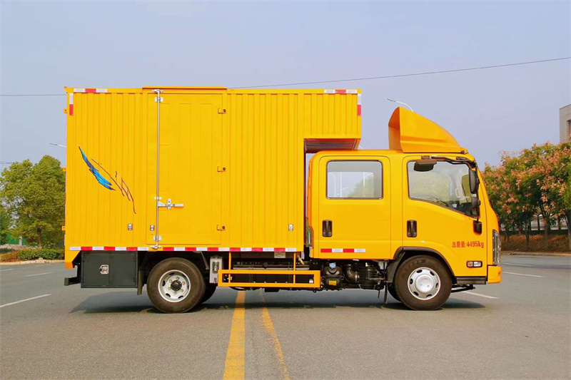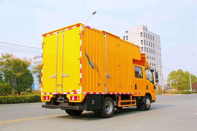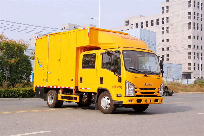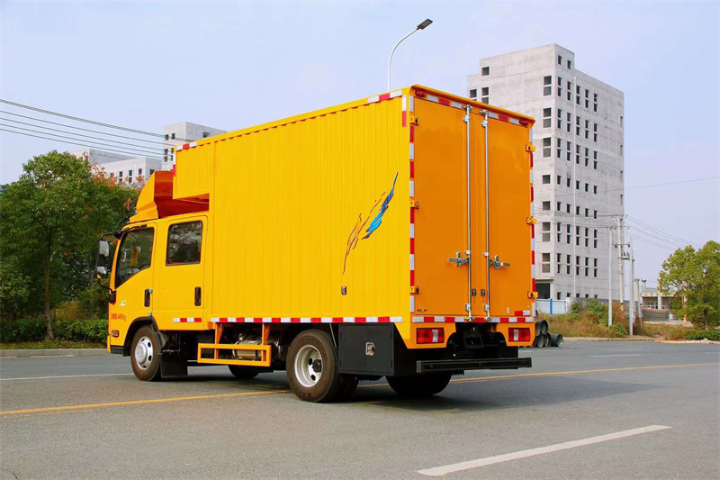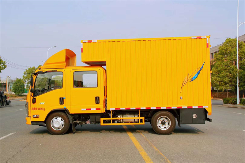 程力汽車五十鈴排澇維修車,配備3.0T發動機,170馬力,雙排座寬體6座駕駛室,全液晶中控顯示屏,駕駛室頂部導流罩。原廠鉚接式箱體,后對開門,側單開門,底板鉚接3mm不銹鋼板,內置照明工作燈。