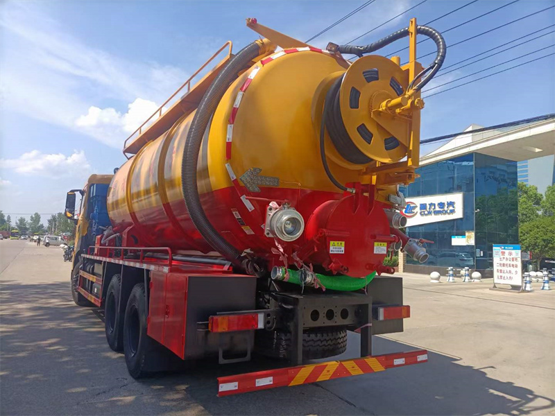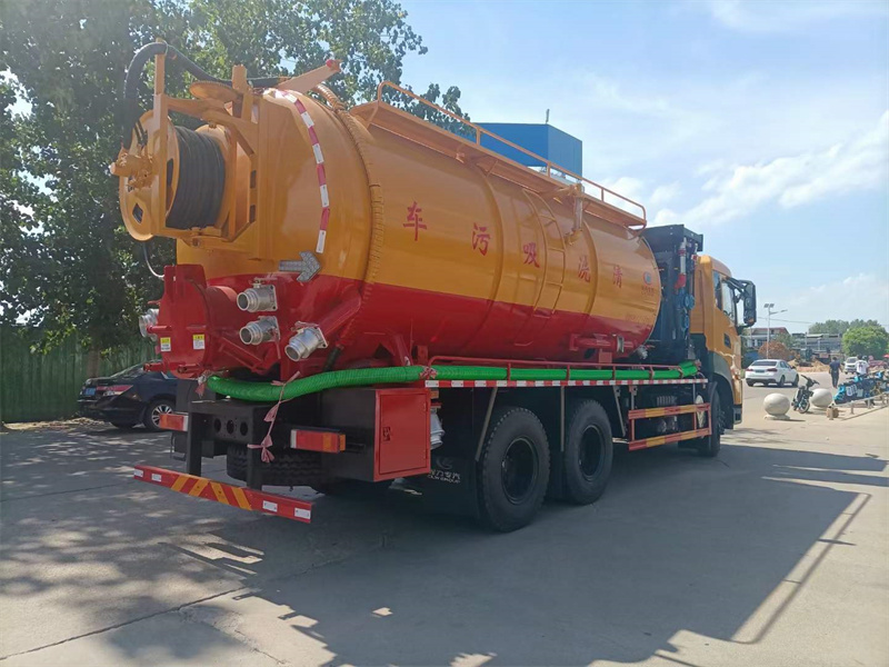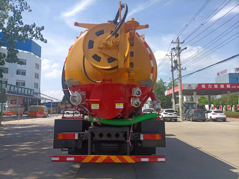 4:后封頭可旋轉齒輪自動液壓絞盤,標配通徑25高壓管100米,耐壓22mpa,后封頭下部開600mm內通徑液壓排污口1個,后封頭右下4寸排污閥1個,后封頭6寸排污球閥1個(不銹鋼)4寸吸污閥1個(不銹鋼),右側后尾部6寸偷排口1個(不銹鋼),副發進氣管用125mm,水循環泵水箱為不銹鋼,1個工具箱,防溢流裝置,后尾部裝雙箭頭燈,清水罐頂部裝排氣閥1個,清水罐底部裝4寸排水閥1個