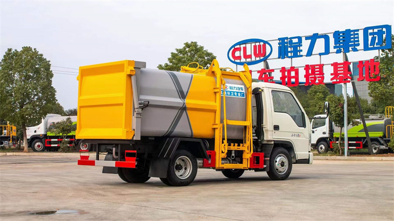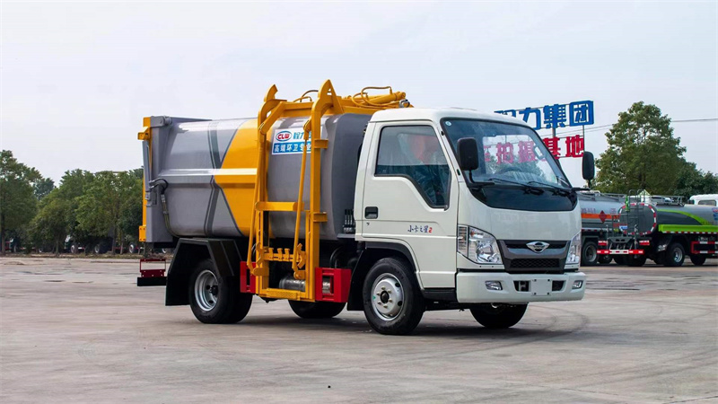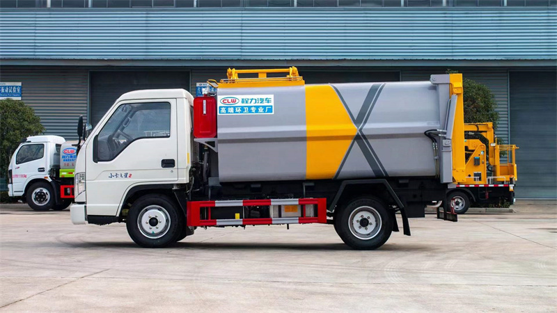 ——藍牌?裝側?壓縮?容積4方,箱體內帶推鏟,240L垃圾桶生活垃圾可拉約35桶,全柴95馬力,駕駛室內、室?均外?可操作。