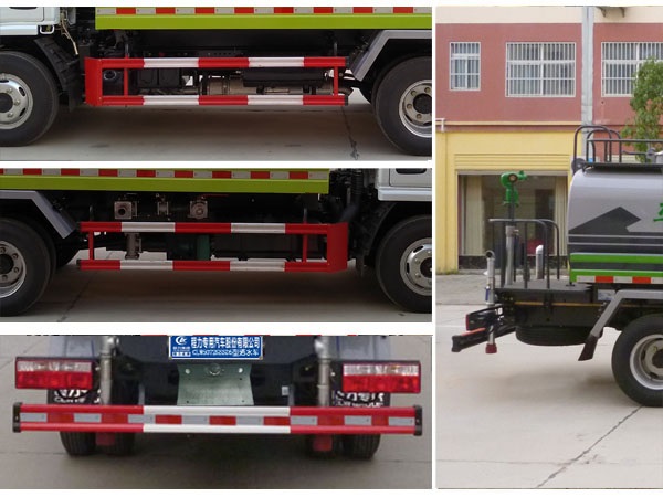 1,罐體有效容積11.35立方米,整車長度/軸距/罐體外形尺寸(長×長軸×短軸)的對應關系為(mm):8400/4700/5000×2300×1450,8200/4500/4800×2300×1500,7650/3950/4300×2400×1600。2,防護材料:Q235B碳鋼,連接方式:左右側面防護與副梁均采用焊接連接,后下部防護與車架采用焊接連接,后部防護斷面尺寸(mm):150×50,后部防護離地高度(mm):480。3,ABS系統生產廠家,型號 :焦作博瑞克控制技術有限公司,J ABS。4,專用裝置:罐體,主要用于路面灑水及園林綠化。