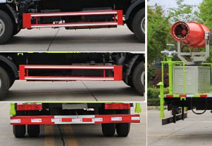 隨底盤選裝駕駛室。專用裝置為抑塵霧炮,用于城市抑塵.整車長/軸距/后懸對應關系為(mm):5995/3308/1632;5630/2950/1625;5505/2700/1750;防護材料:Q235B碳鋼,連接方式:左右側面采用螺栓連接,后下部防護采用螺栓連接,后部防護斷面尺寸(mm):120×50,后部防護離地高度(mm):450.ABS型號/廠家:ABS/ASR-12V-4S/4M/襄陽東風隆誠機械有限責任公司。