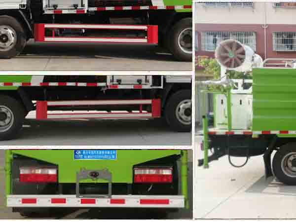 隨底盤選裝駕駛室.側(cè)防護(hù)及后下部防護(hù)裝置均采用Q235A材質(zhì),均采用焊接連接,后下部防護(hù)尺寸:50×120(mm),離地面高度390mm;ABS廠家及型號(hào):襄陽東風(fēng)隆誠機(jī)械有限責(zé)任公司/ABS /ASR -12V-4S/4M.專用裝置為抑塵霧炮,用于礦場(chǎng),露天堆場(chǎng)及爆破現(xiàn)場(chǎng)等的噴霧抑塵.整車長(zhǎng)/軸距/后懸對(duì)應(yīng)關(guān)系為(mm):6400/3308/2037,5905/2950/1900,5455/2700/1700.