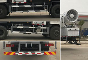 專用裝置為抑塵霧炮,用于城市抑塵.整車長/軸距/后懸對應(yīng)關(guān)系為(mm):10630/4350+1350/3490;10630/4750+1350/3090;11880/5400+1350/3690;11880/5700+1350/3390;11880/5900+1350/3190;防護材料:Q235A碳鋼,連接方式:左右側(cè)面采用焊接連接,后下部防護采用螺栓連接,后部防護斷面尺寸(mm):120×50,后部防護離地高度(mm):500.ABS型號/生成廠家:3631010-C2000/東科克諾爾商用車制動系統(tǒng)(十堰)有限公司;選裝霧炮型號:WF-60/WF-80/WF-100所對應(yīng)的整備質(zhì)量分別為:12300kg/13250kg/14000kg。隨底盤選裝駕駛室。選裝外形圖片。