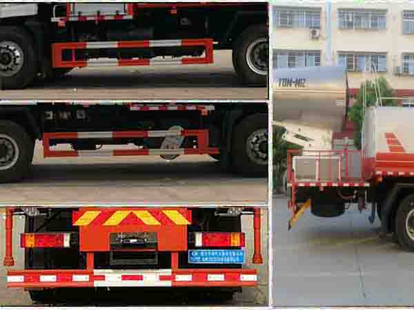 專用裝置為抑塵霧炮,用于城市抑塵.整車長/前懸/軸距/后懸對應(yīng)關(guān)系為(mm):11125/1475/4350+1350/3400,11525/1475/4750+1350/3400,11900/1475/5900+1350/2625,11125/1515/4350+1350/3360,11525/1515/4750+1350/3360,11900/1515/5900+1350/2585.此車前伸(mm):550.防護材料:Q235A碳鋼,連接方式:左右側(cè)面及后部防護均采用焊接連接,后部防護斷面尺寸(mm):150×50,后部防護離地高度(mm):470.ABS生產(chǎn)廠家;東科克諾爾商用車制動系統(tǒng)(十堰)有限公司, 浙江萬安科技股份有限公司,型號:3631010-C2000, VIE ABS-Ⅱ.隨底盤選裝駕駛室.
