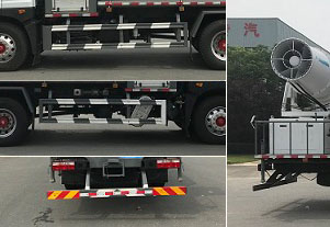 專用裝置為抑塵霧炮,用于城市抑塵。整車長(zhǎng)/軸距/后懸對(duì)應(yīng)關(guān)系為(mm):7770/3950/2560;8680/4500/2920;8680/4700/2720;8980/5000/2720;9280/5300/2720;9580/5600/2720防護(hù)材料:Q235B碳鋼,連接方式:左右側(cè)面采用焊接連接。后下部防護(hù)采用螺栓連接,后部防護(hù)斷面尺寸(mm):120×50,后部防護(hù)離地高度(mm):490。ABS系統(tǒng)生產(chǎn)廠家,型號(hào) :焦作博瑞克控制技術(shù)有限公司,J ABS。選裝霧炮型號(hào):WF-60/WF-80/WF-100所對(duì)應(yīng)的整備質(zhì)量分別為:9400kg/10400kg/11000kg。選裝外形圖片。