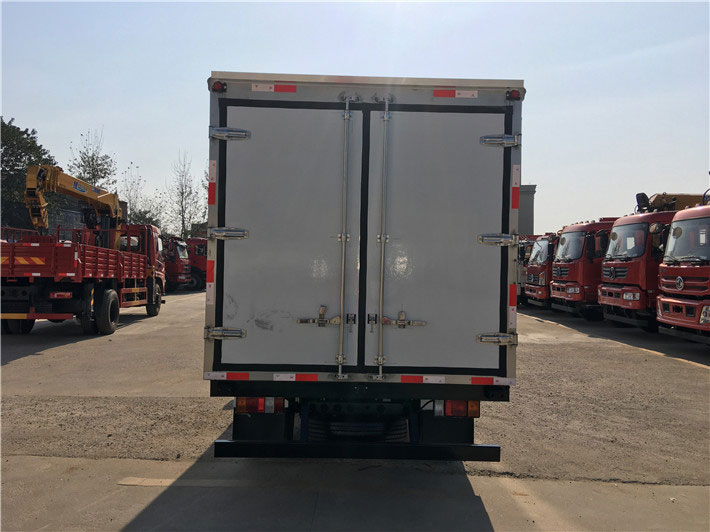 (2)廂板材質:內外壁板選用國內優質的機制2.2mm玻璃鋼;中間保溫材料選用厚進口聚氨酯; 廂體厚度80mm 門厚度80mm;底板上下面玻璃板,中間進口聚氨酯;
