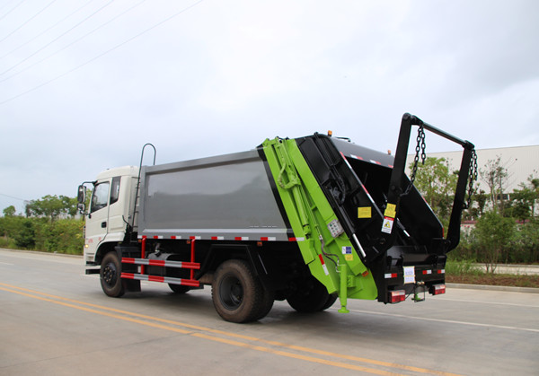 上裝配置:弧形箱體,容積約10-12立方,可裝垃圾8-10噸,采用特種鋼板制作,箱體底板5mm,邊板5mm,廈門銀華油缸,江蘇多路閥,長源液壓油泵,填裝器舉升油缸帶液壓鎖裝置,采用進口西門子PLC電控系統(帶一鍵操作,和手動操作兩種控制方式),電控操作盒三只。帶3個污水收集箱,尾部帶橡膠密封條。填充器加裝后照明燈,箱體油漆及噴字按用戶要求定制。