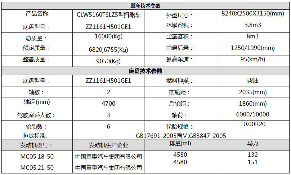 國五重汽掃路車