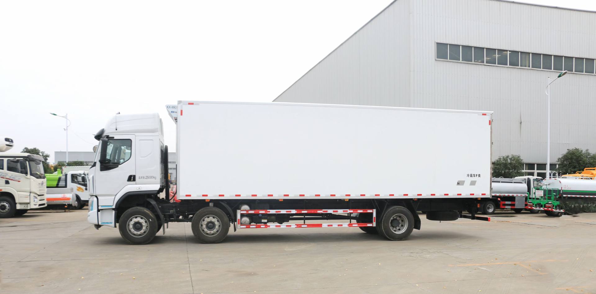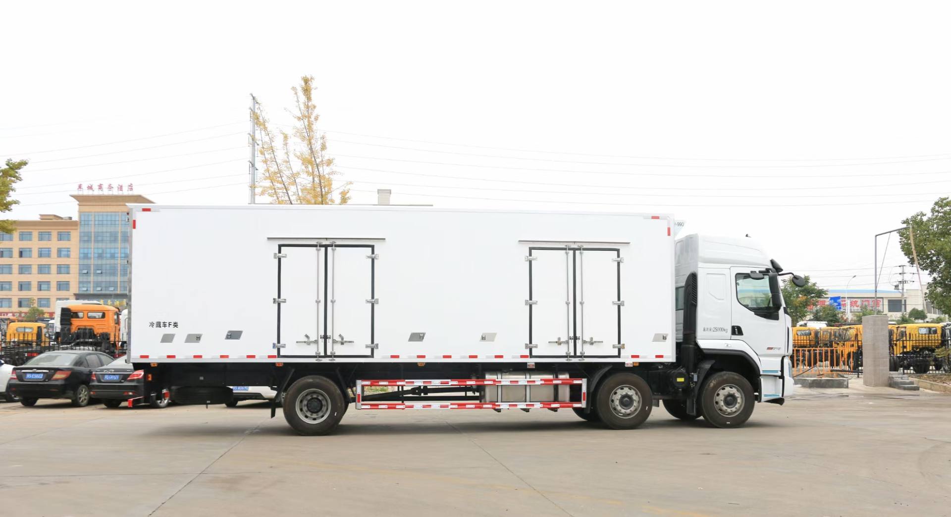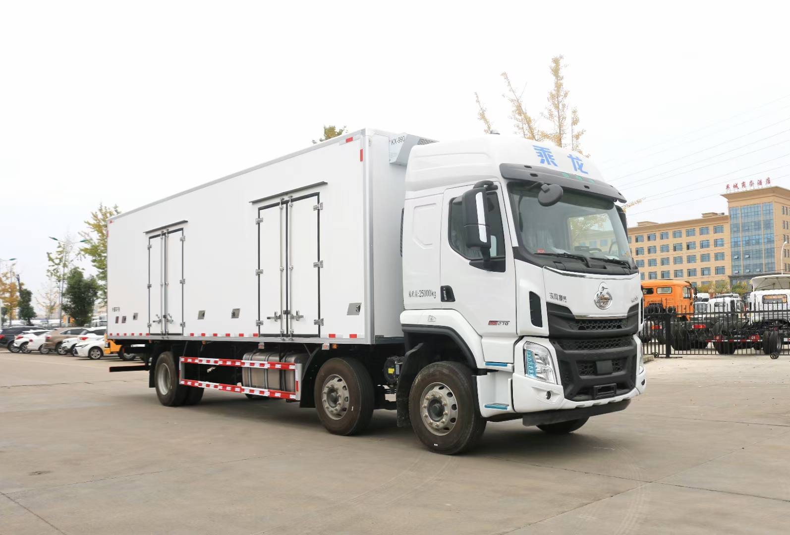 其它 | 選裝保險杠、翼子板,選裝后視鏡,選裝車門下飾板,選裝臥鋪側窗,選裝綠玻璃,選裝導流罩,選裝平頂駕駛室,選裝高頂駕駛室,可選駕駛室頂部“乘龍”標志,選裝前保格柵.貨廂可選單開門,雙開門或不開門型式,可選裝功率相當?shù)钠渌鼜S家的制冷機組,可選裝前置式或底置式制冷機組;廂式車車廂頂部封閉,不可開啟.選裝可升降液壓尾板,起重尾板收起狀態(tài)的水平長度295mm,尾板質量為550kg.總長/廂長/前后懸/整備質量/離去角對應關系: 12000/9600/1445/3155/10920/10,11100/8600/1445/3155/10920/10,10300/7800/1445/2755/10920/11;多個尺寸差異導致的質量差異在3%內.防護裝置料材質:Q235,螺栓連接,后部防護裝置的主要尺寸參數(shù):斷面尺寸120×80mm,離地高度480mm.ABS型號/企業(yè):ABS-E 4S/4M/威伯科汽車控制系統(tǒng)(中國)有限公司.應裝有衛(wèi)星定位的行駛記錄儀. B6.2NS6B230對應油耗值為30.3L/100km, B6.2NS6B260對應油耗值為30.3L/100km,YCS06245-60A對應油耗值為30.3L/100km,YCS06270-60對應油耗值為30.3L/100km,D6.7NS6B290對應油耗值為30.3L/100km. |