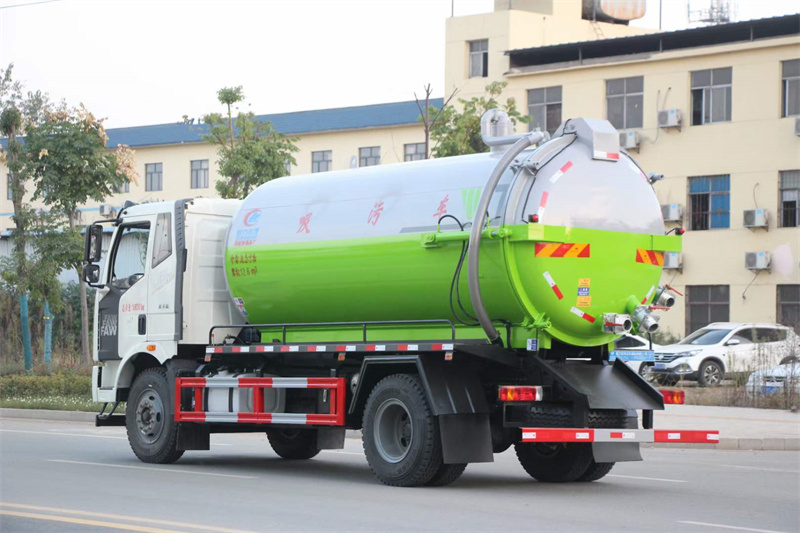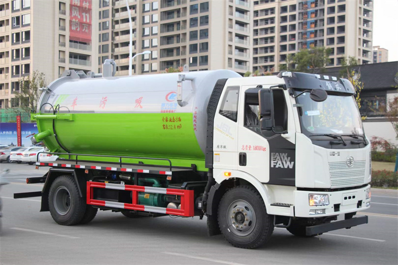 一汽解放吸污車上裝:罐體容積13方,國標武鋼6MM厚。罐體液壓舉升,后蓋液壓開啟,億豐SK-12水循環泵。