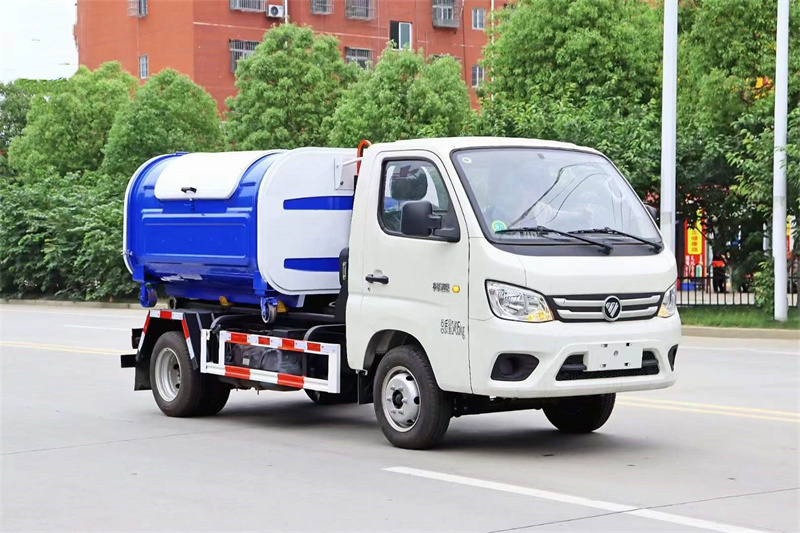 底盤配置: 2750軸距,1550m車身,東安115馬力,5檔變速箱、175R14后雙胎、122后橋,ABS、電動助力轉向、中控鎖、空調。                              上裝配置:可配3方垃圾箱,大臂雙缸舉升,強度合金鋼一體式主勾臂,加強型副梁,鑄鋼尾托輪,電控室內外液壓操控裝置(可選裝手自一體),上裝最大提升能力1500KG,?液壓完成上箱+下箱+鎖緊+自卸等作業,實現一車配多箱的循環轉運。