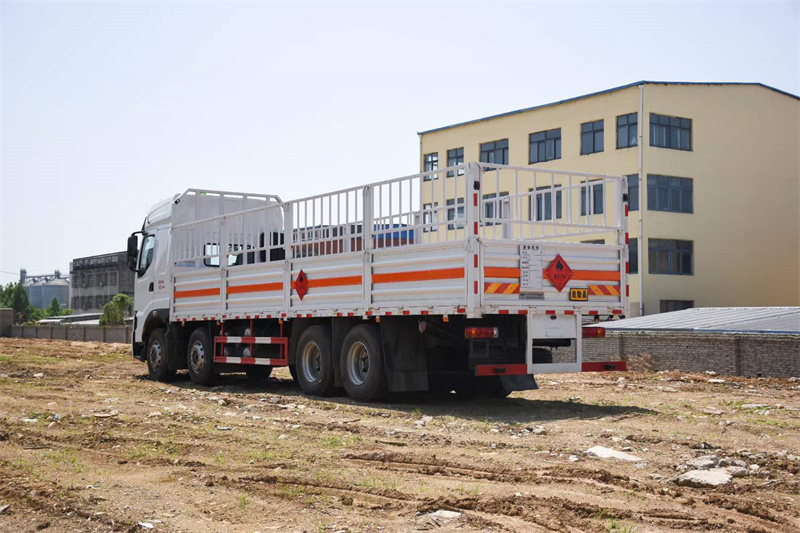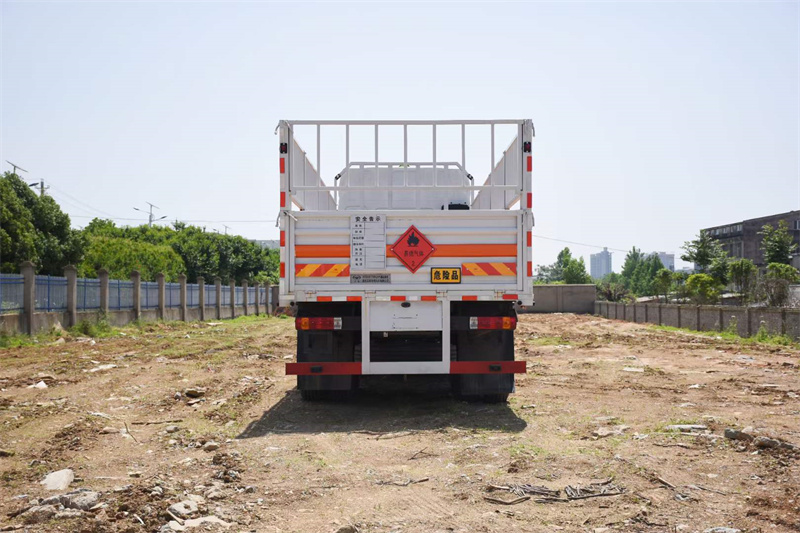 倉欄配置:嚴格按照公告尺寸制作,底板采用5個厚花紋板制作,底板上鋪靜電膠皮,帶可卸式高欄,配備滅火器,三角頂燈,靜電拖帶等,嚴格按照國家危險品法規(guī)進行“易燃氣體”標識粘貼等.