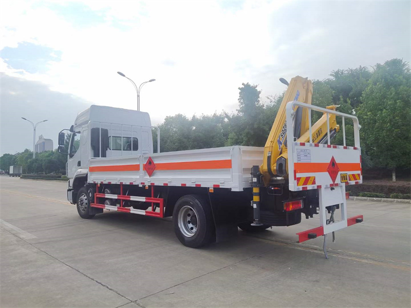 倉欄配置:嚴(yán)格按照公告尺寸制作,底板采用5MM花紋板制作,底板上鋪靜電膠皮,低欄瓦楞式,配備滅火器,三角頂燈,靜電拖帶等,嚴(yán)格按照國家危險(xiǎn)品法規(guī)進(jìn)行“易燃?xì)怏w”標(biāo)識(shí)粘貼等,帶徐工吊(4噸3節(jié)折臂)