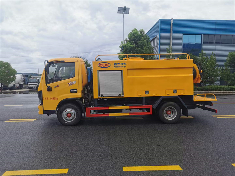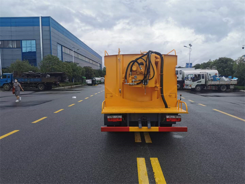上裝配置:1.水罐采用武鋼優質鋼板制作,壁厚4個厚,罐體中間合理設計防浪板,罐體上面設計檢查人孔,也當可加水孔用,帶水位量管帶洗手裝置,2.水箱進水口為球閥式消防栓(方便開關,經久耐用),帶消防接口,帶低水位排水口,3.高壓泵采用德國品孚170L型號,24兆帕壓力,安裝自主研發大型過濾器(防止雜質進泵,過濾器免拆洗),帶氣吹水功能(冬季可把高壓泵,高壓管的水吹干凈,防止凍壞),4.后高壓卷盤液壓放管收管,帶淋管功能(高壓管作業后,往回收時,可以沖洗高壓管),5.操作系統排列整齊,均有操作說明及注意事項,液壓管路重要部分采用高強度鋼管,堅固耐用,6.帶2個工具箱,帶卷簾門(方便高壓泵保養檢修)7車輛采用鍍鋅防護網,花紋防滑護欄(美觀耐用).