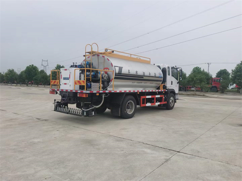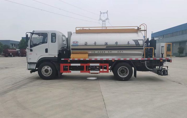上裝部分:高粘度瀝青泵QGB680。進口液壓比例閥。日升牌散熱器。安徽長源齒輪油泵。浙江寧波液壓馬達(AKS05-110)驅動瀝青泵。駕駛室內觸屏及尾部平臺手動控制,對尾部 34個瀝青噴嘴一對一控制。升溫方式,柴油燃燒器(意大利利雅路G20)加熱導熱油循環升溫。配備7千瓦汽油發電機。灑布量:0.3-3L/㎡,灑布寬度4.5米。主要噴灑乳化瀝青、熱瀝青、SBS改性瀝青等。