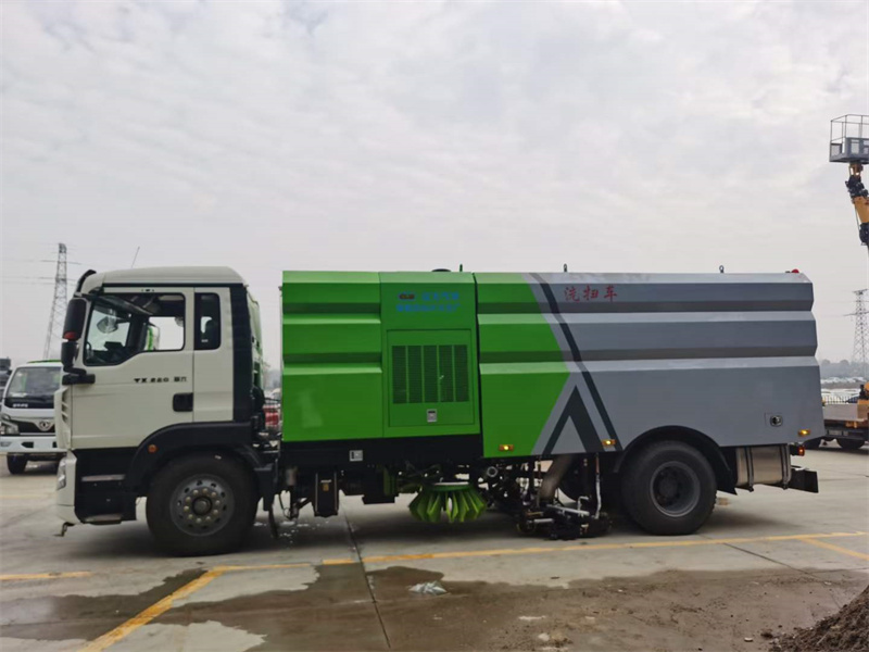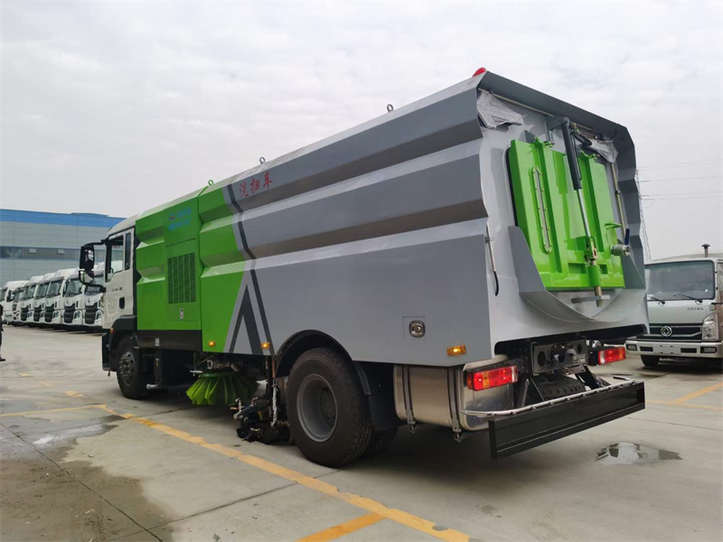 上裝配置:水箱容積9方/垃圾箱容積7方,水箱及垃圾箱采用不銹鋼板材制作,海德瑞沃電磁閥組及油缸。中置2掃盤掃刷帶吸盤、高品質免維護風機。副機采用康明斯六缸170馬力發動機,德國品孚高壓泵(前路沿/側噴/中噴/手持高壓沖洗/垃圾箱自潔/后噴霧)低壓沖洗,高低水位報警室內3監控及多種語音報警功能。尾部箭頭方便用戶作業用車。