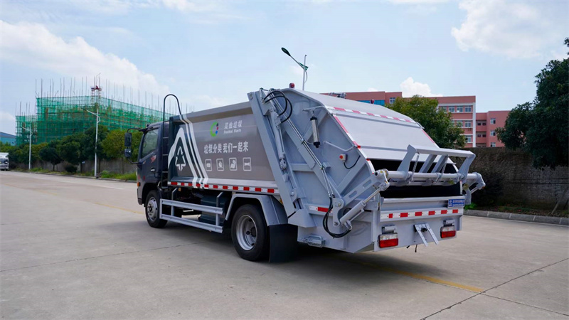 上裝配置:9方壓縮垃圾車,該車后伸為:300,采用Q235錳鋼,左右側面防護采用螺栓連接在車架副梁上,后部防護由專門裝置代替,最小離地高度為490mm,鴻輝多路閥,配40長源泵,博利油缸,CAN總線路電控,帶遙控,可掛兩個240L垃圾桶,氣控防塵蓋,其余嚴格按公告樣式制作。