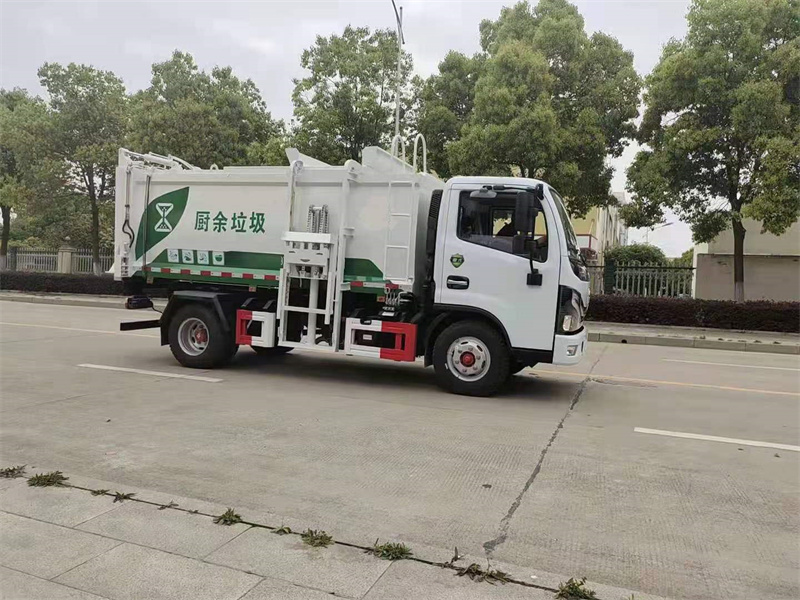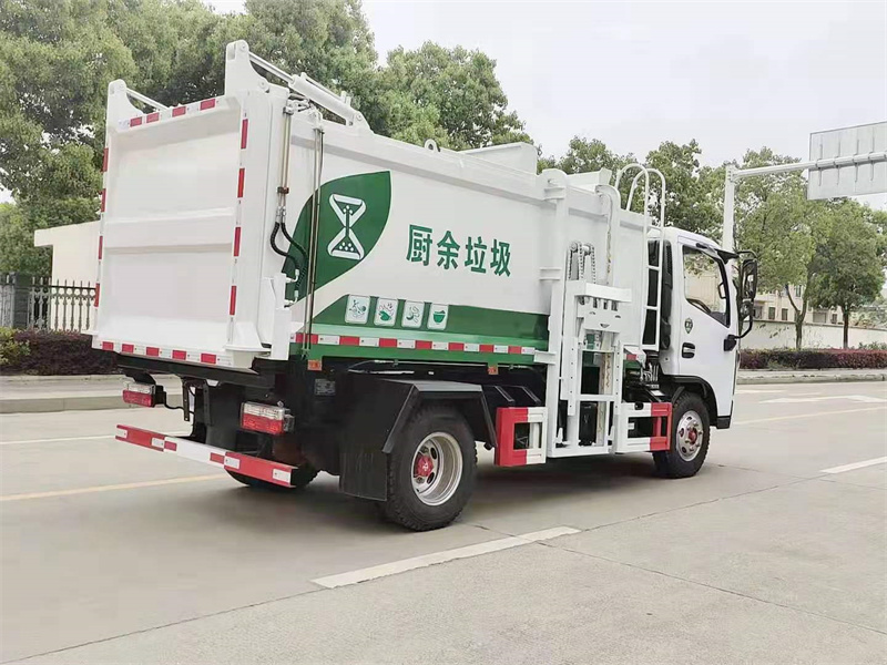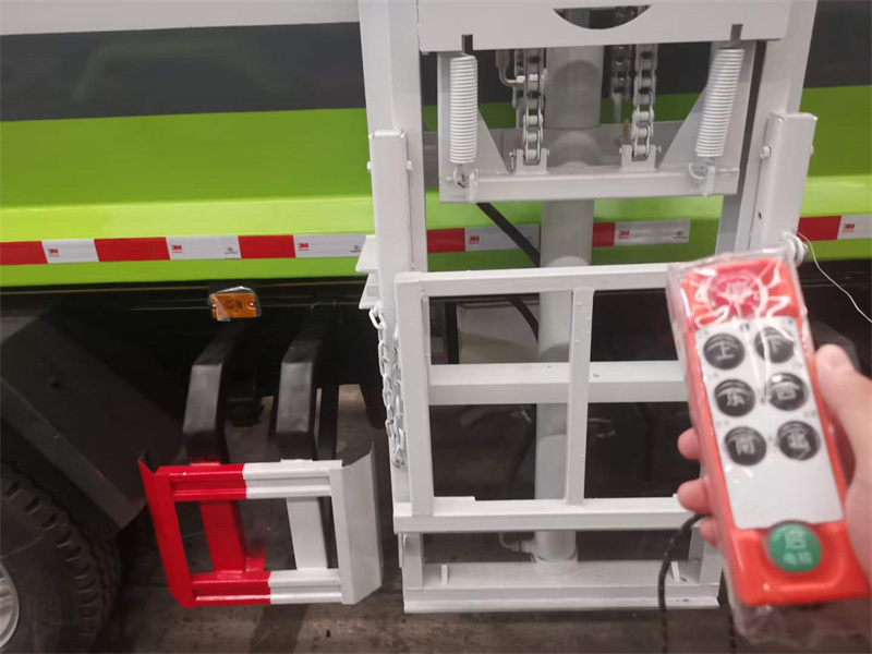 餐廚垃圾車上裝配置:一體成型方形箱體,舉升卸料,箱體采用Q345高強度錳鋼,邊三底四,輕量化的同時大幅度提升箱體強度。長源液壓油缸,中梅多路閥,帶電控操作系統(tǒng),駕駛室內(nèi)集成電控,可以在駕駛室和提升機旁兩個位置操作箱體舉升,提升機上升下降,尾門開啟關(guān)閉。尾門全密封條,帶液壓鎖緊,在原有的自裝卸式箱體的基礎(chǔ)上增加2路多路閥、2路順序閥、2只鎖緊油缸,尾門頂部及腰部4只液壓油缸自動調(diào)節(jié),密封效果更優(yōu),有效杜絕油水滴漏。配備鏈條式提升機,120-240L圓桶方桶都可以提升,箱體頂部艙門帶密封條,箱體頂部艙門滑動向后開啟,便于層高不夠的地庫中操作,箱體右后部帶DN65排污球閥及快插式陰端接頭,其余公司標配。