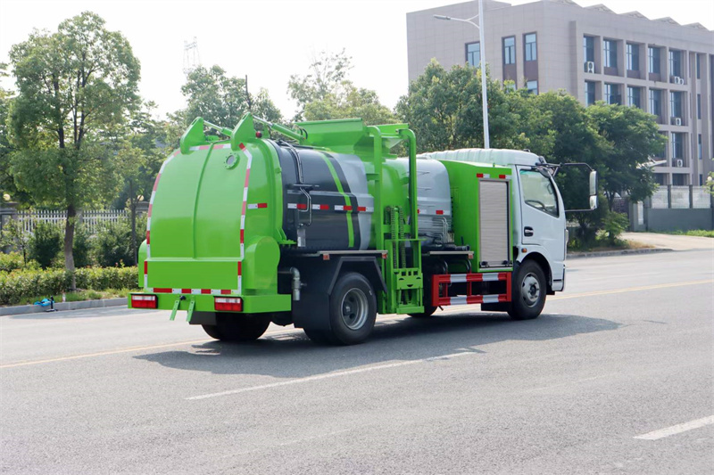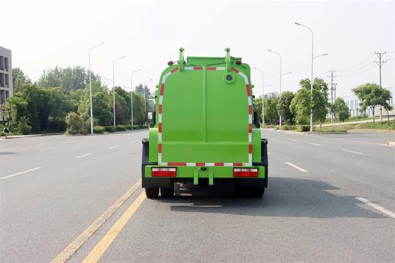 底盤電池提供動力,永磁同步電機驅動,可根據需要實時調速,取力操作與底盤行駛系統無任何關聯,用車體驗感極佳。優質高強度 Q345 錳鋼制作無泄漏箱體,標配:1.弧形罐體,邊四底五/邊五底六。2.長源/皖液油泵,長源/中梅多路閥,知名液壓油缸。3.全推鏟卸料(不帶舉升功能),具有干濕分離功能。液壓后蓋,后蓋配防腐硅膠密封條。4.后門液壓鎖緊5.鏈條式提升機,可掛120/240升標準塑料垃圾桶。進料口蓋液壓開關。6.駕駛室內電控(提升機外部手動控制),后門鎖緊與后蓋開關的操作具有防誤操作。7.箱體帶清洗裝置(液壓馬達帶動高壓泵、帶水箱)。