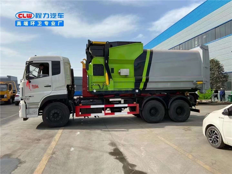 天龍后雙橋勾臂垃圾車配備18方移動壓縮垃圾站