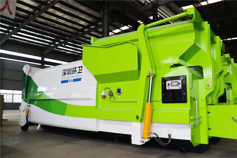 發往深圳環衛8-20立方移動式壓縮垃圾箱,顏色隨心,尺寸定制。