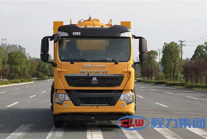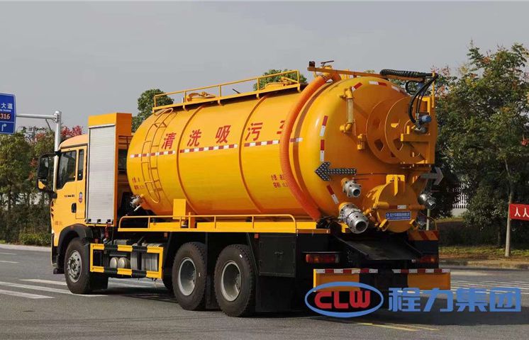 程力22方清洗吸污車整車型號(hào)為CL5251GQW6CC型重汽豪沃后八輪清洗吸污車,德國(guó)曼350馬力。