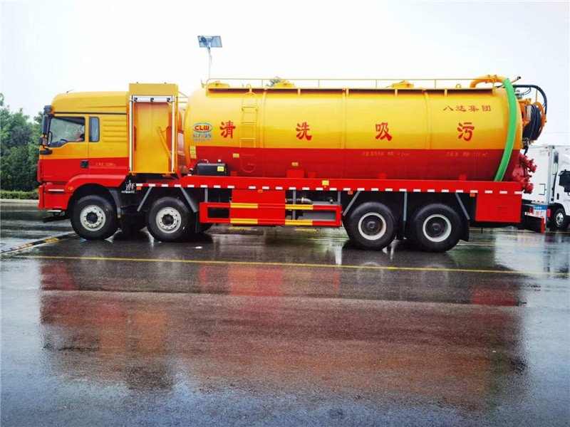 陜汽德龍國六前四后八程力牌CL5312GQW6CC 新M3000清洗吸污車人性化設(shè)計,最實用的4橋清洗吸污車,底盤配置:濰柴發(fā)動機460馬力,輪胎:12.00R20,底盤后橋加固(四騎馬螺栓),M3000加長高頂駕駛室,液壓懸置、空氣主座椅、駕駛室手動翻轉(zhuǎn)、金屬保險杠、電動空調(diào)、電動搖窗機、國產(chǎn)轉(zhuǎn)向機、國產(chǎn)離合器、備胎架、國產(chǎn)四通道ABS、搖臂式遠程油門控制裝置、天行健智雅版BD車載終端、變速箱后取力。
