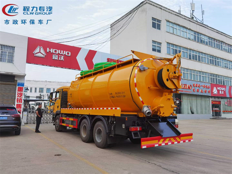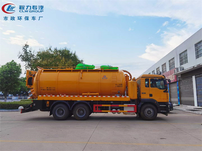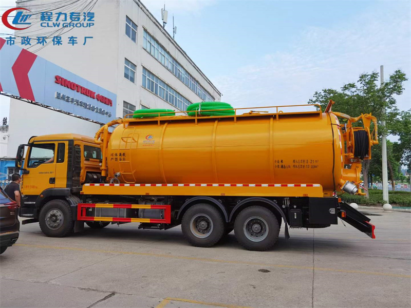 汕德卡清洗吸污車容積22方,全功率分動箱,鋁合金xw-2800吸污泵,德國品孚330高壓泵,前置頂,液壓卷盤,液壓左右旋轉。